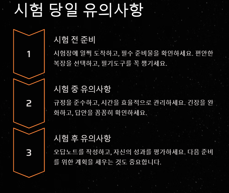주택관리사 시험은 철저한 준비뿐 아니라 시험 당일의 심리적 안정과 체계적인 계획이 중요합니다.