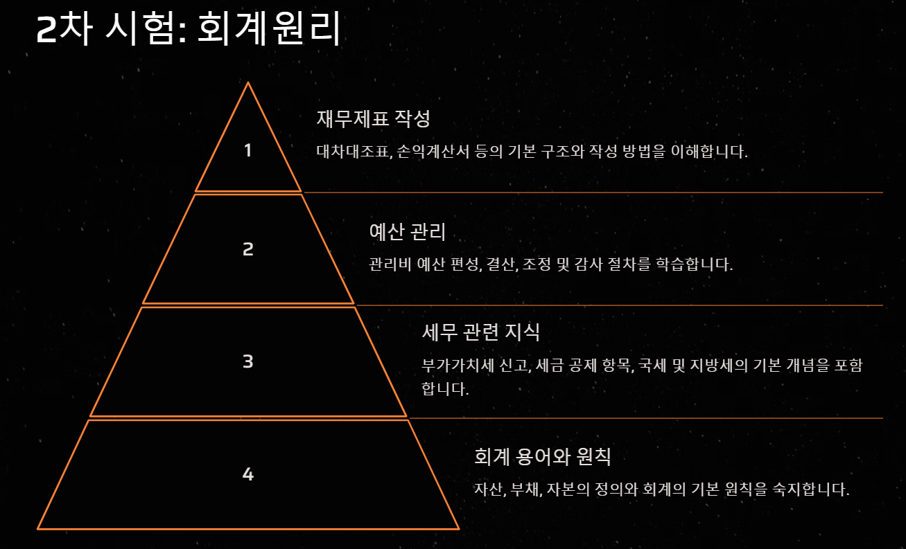 - 세무 관련 지식: 부가가치세 신고, 세금 공제 항목, 국세 및 지방세의 기본 개념을 포함합니다.