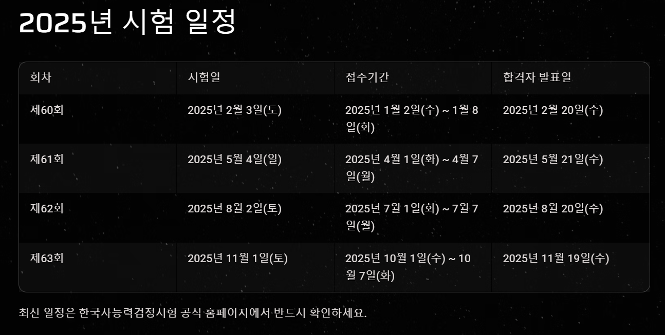 ✅ 최신 일정은 한국사능력검정시험 공식 홈페이지에서 반드시 확인하세요.