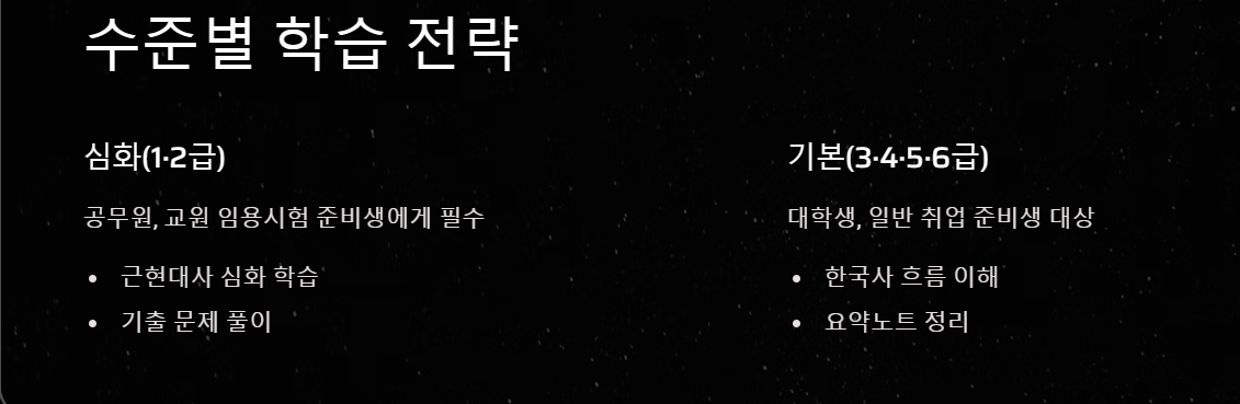 - 심화(1·2급): 공무원, 교원 임용시험 준비생에게 필수